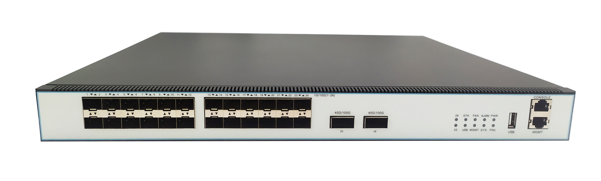 SX6324-ADCB:24*10G SFP+,2*40G QSFP /2*100G QSFP28,1+1 modular redundant power supply, modular fan.